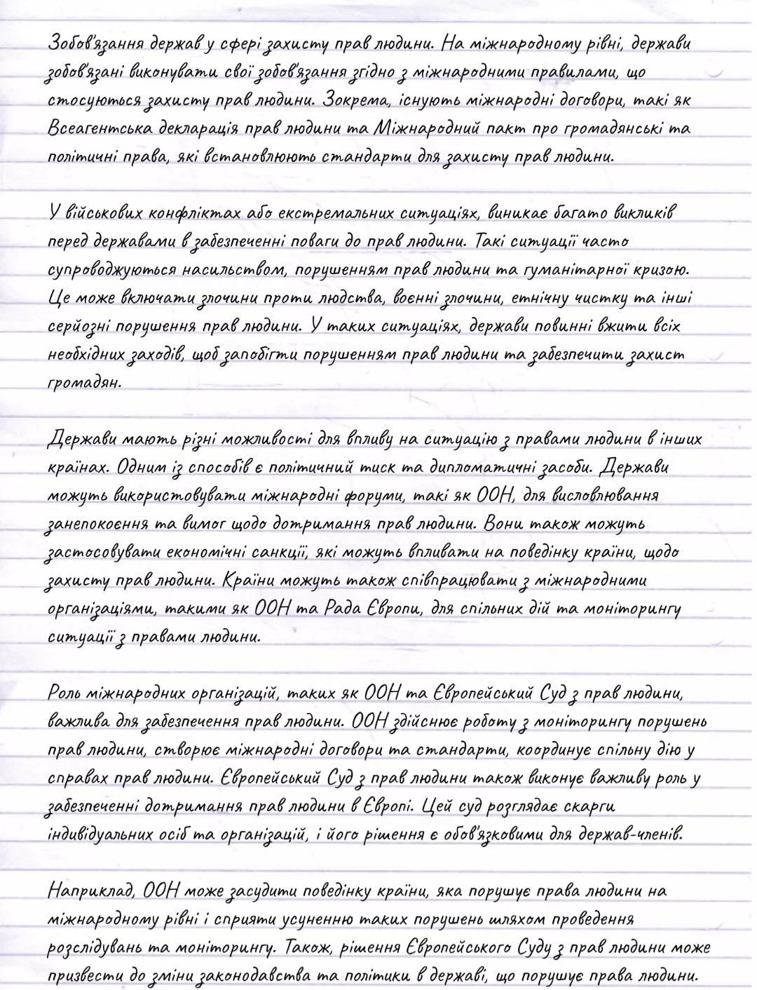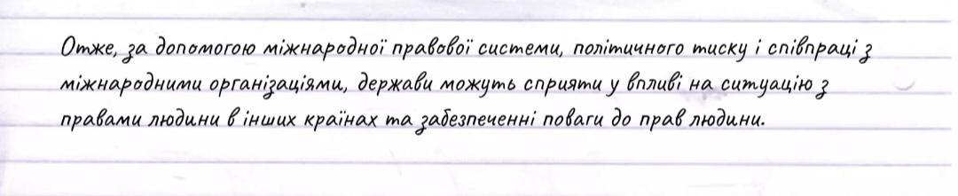 Відповідь : Механізми міжнародного права, зокрема різноманітні конвенції та договори, встановлюють стандарти для захисту прав людини на світовому рівні.